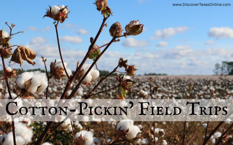 If there are cotton fields in your region, this is the time of year when farmers are about ready to harvest. Since cotton is a very important money crop in Texas, now is a great time to call your student’s attention to several aspects of the agricultural industry.
